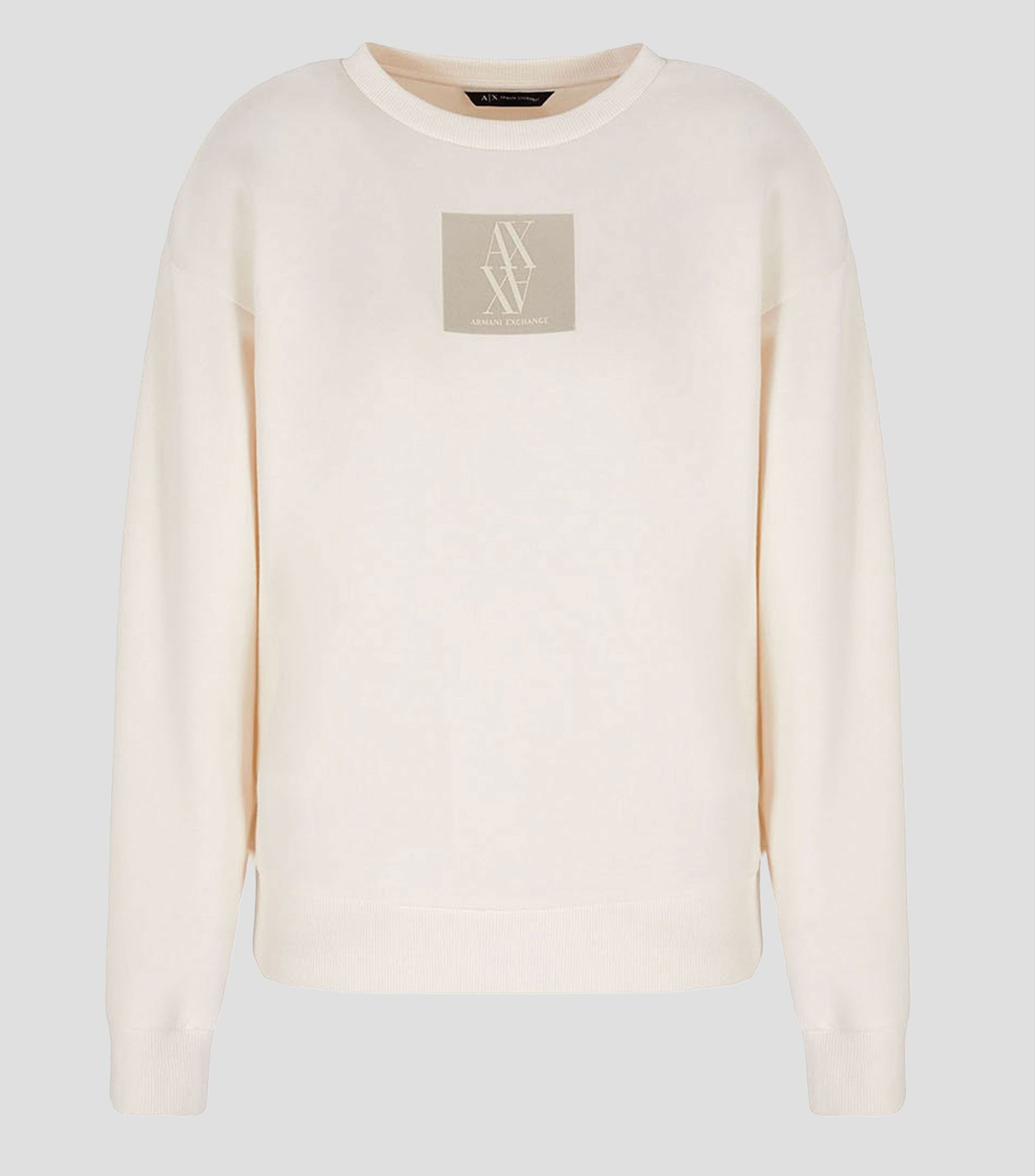 Sudadera Armani Exchange; de corte regular en tejido de punto, diseño liso con logotipo de la marca en la parte frontal, cuello redondo, manga larga y terminaciones a canalé. Esta sudadera, con su diseño refinado y su tejido de alta calidad, ofrece una mezcla perfecta de comodidad y sofisticación para cada día casual.